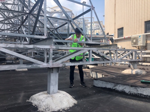 9、检测平台高差,平台构件连接状况,平台与塔体的连接;